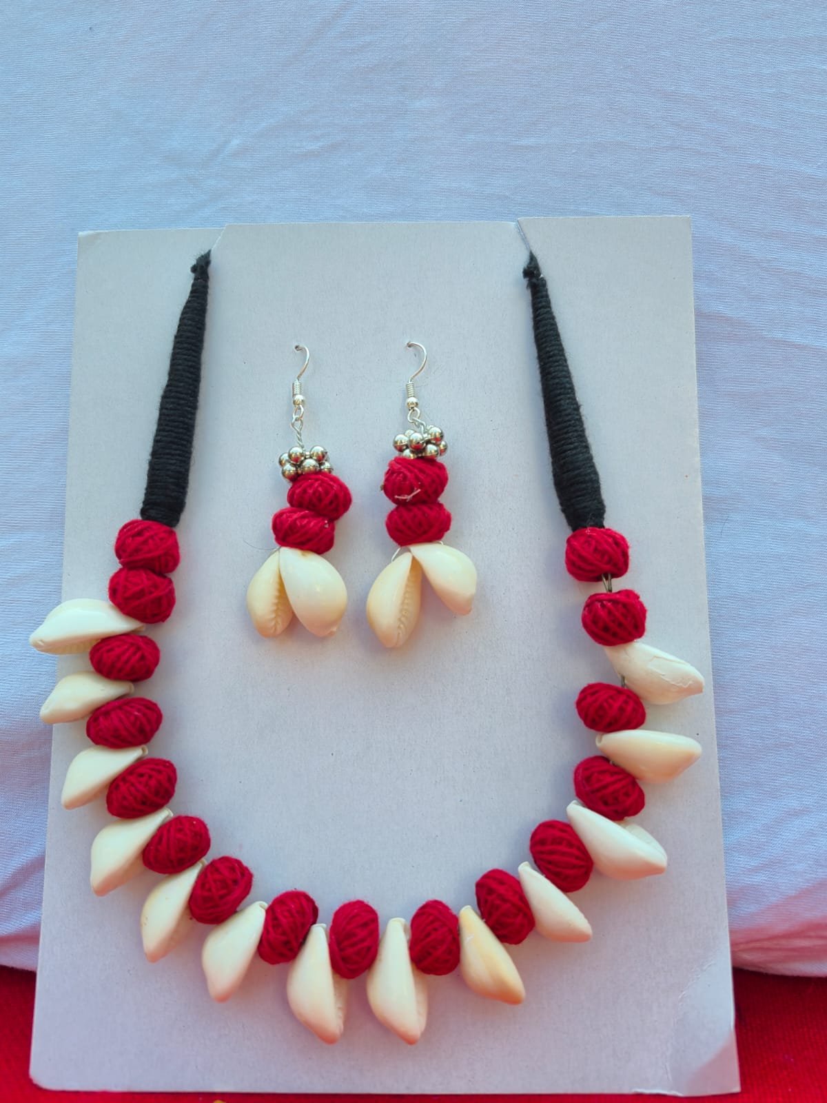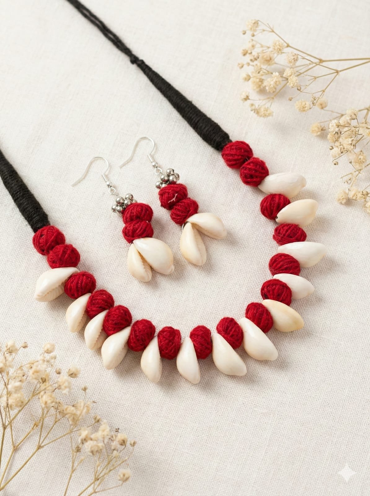 Handcrafted Red Thread & Shell “Kauri” Choker Set
