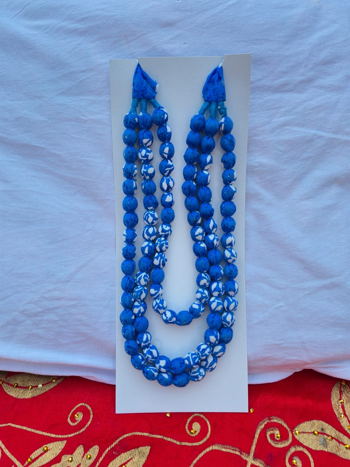 Elevate your everyday look with our Handcrafted Fabric Bead Necklace. Skillfully made by wrapping soft, printed cotton fabric over lightweight beads, this necklace creates a bold statement without the weight of heavy metal or stone jewelry.