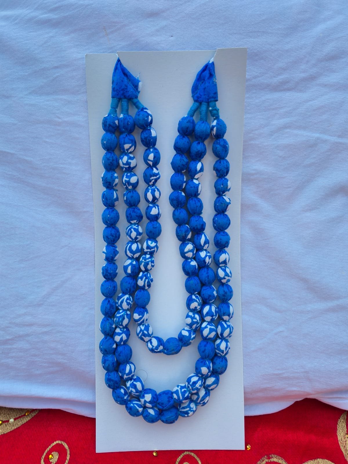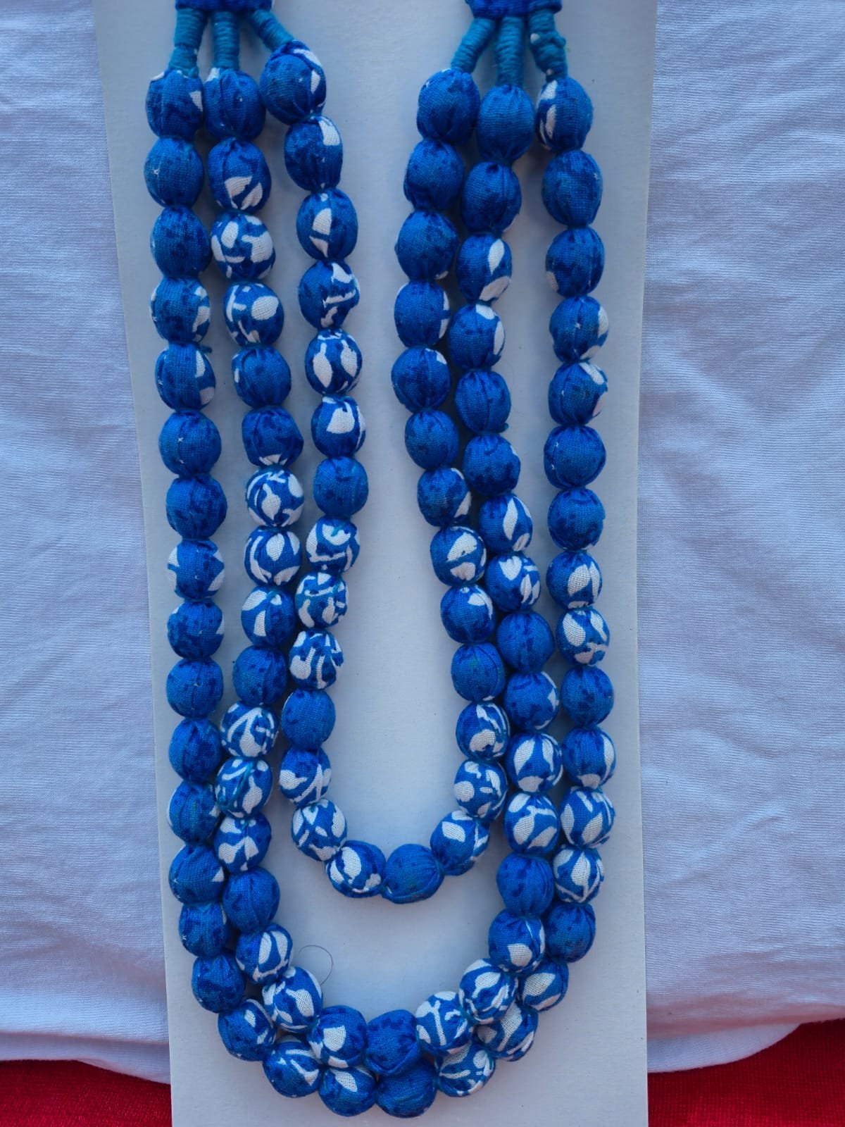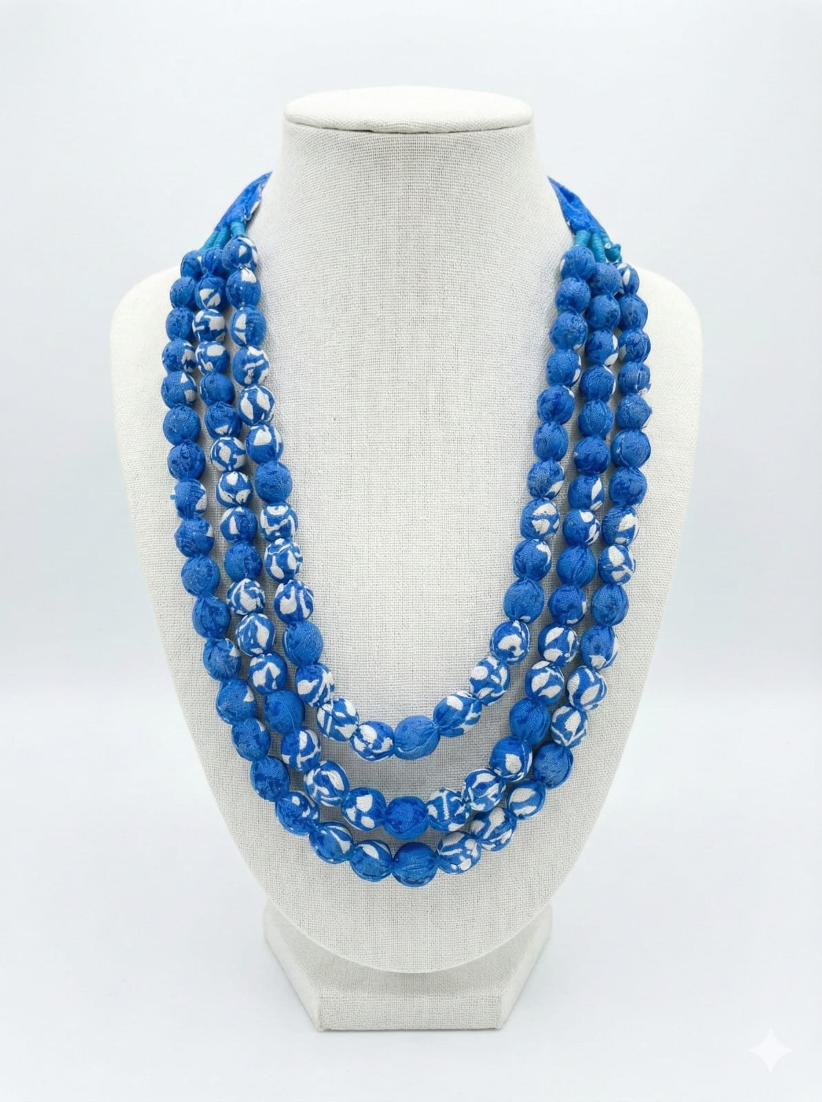 Handcrafted Sky Blue & White Layered Fabric Bead Premium Necklace