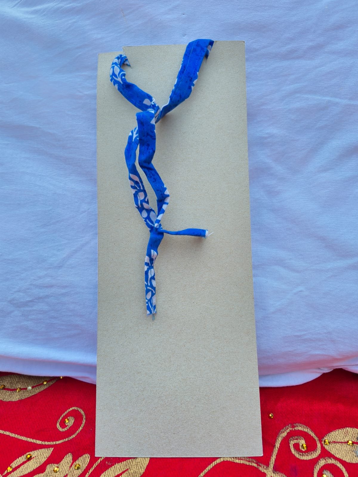 Add a vibrant pop of color to your wardrobe with this stunning, sustainable textile jewelry piece.