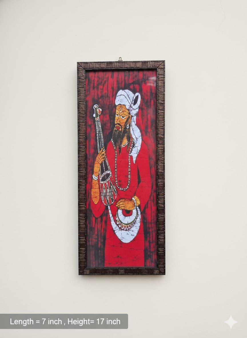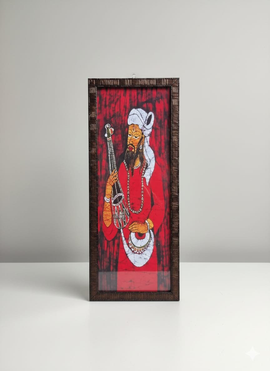 Add a soulful touch of heritage to your home with this stunning handcrafted Batik wall art. Featuring a traditional folk musician in vibrant hues, this piece captures the rhythmic spirit of rural artistry, making it a perfect statement for your living room, study, or hallway.